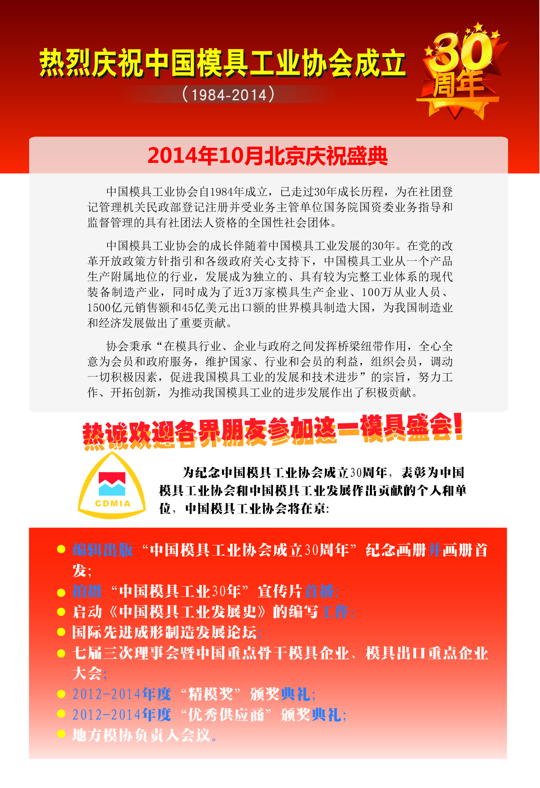 中國模具工業協會成立30周年2014年10月北京慶祝盛典