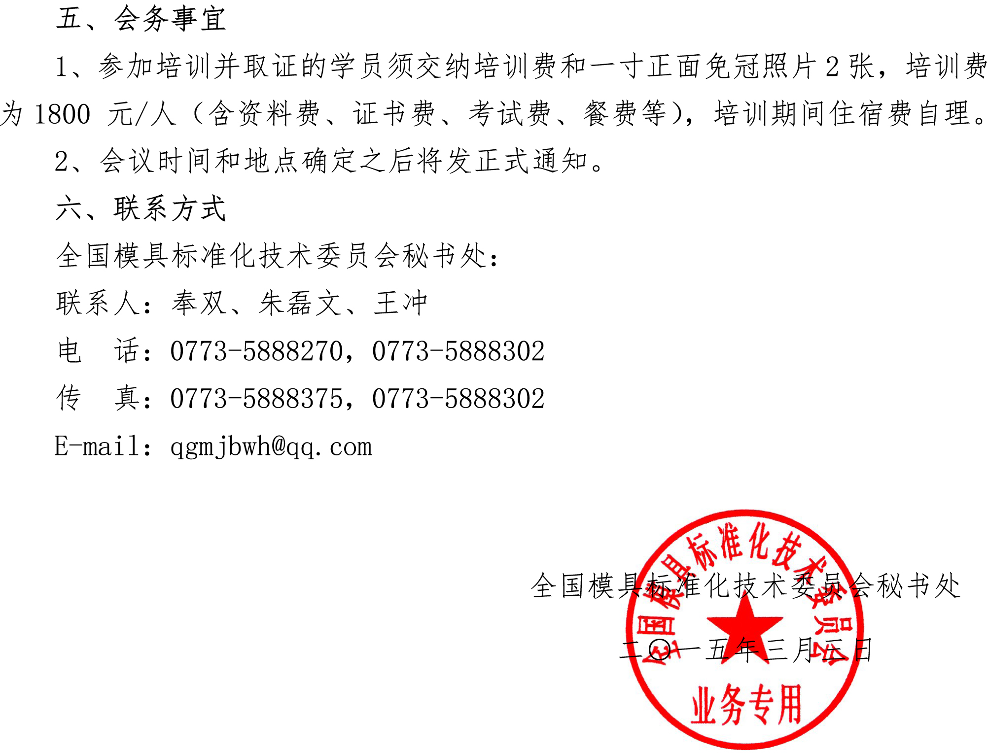 關于舉辦“機械工業標準編寫人員資格培訓”的預通知