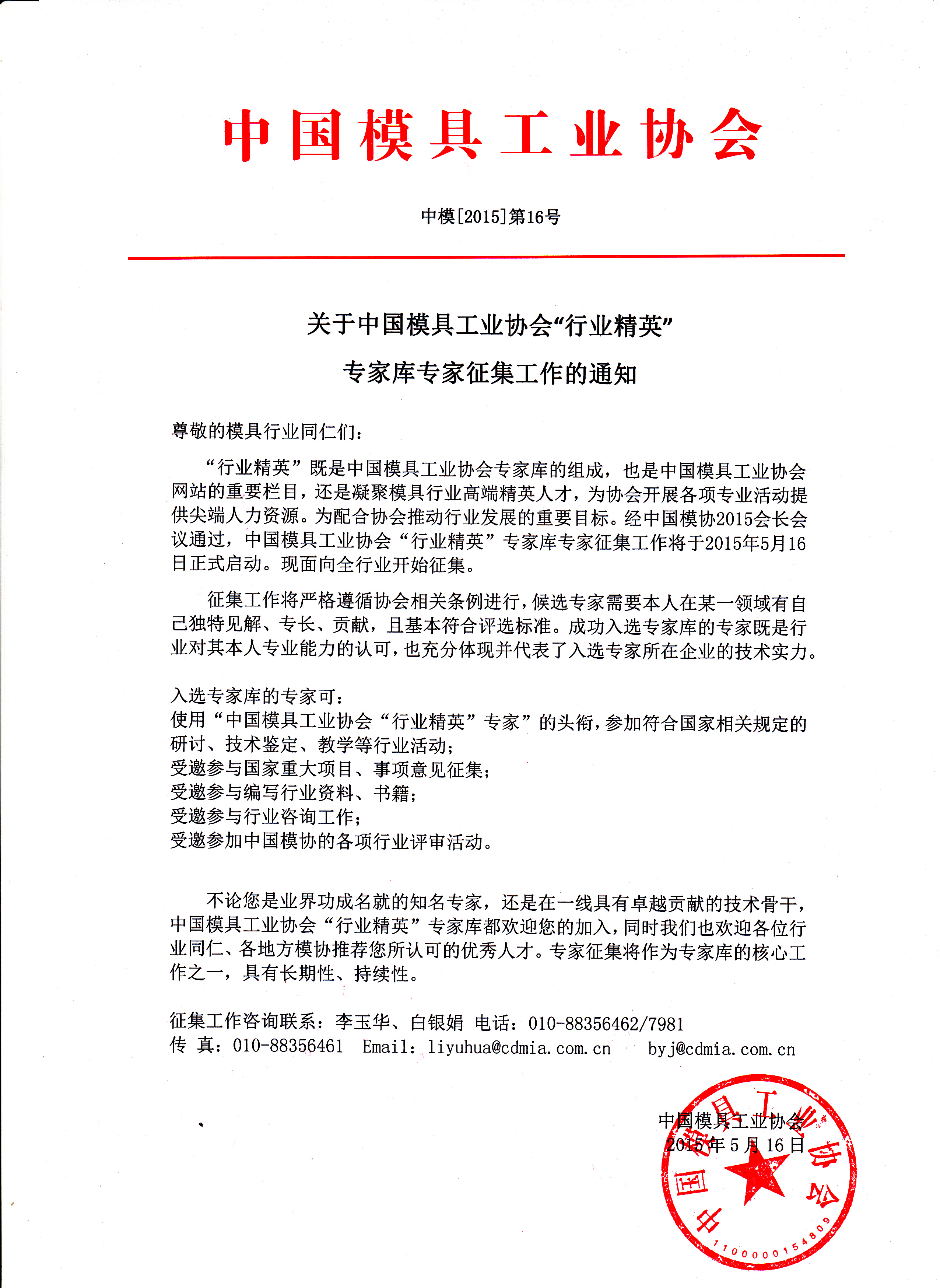 關(guān)于中國模具工業(yè)協(xié)會“行業(yè)精英”專家?guī)鞂<艺骷ぷ鞯耐ㄖ?/h3>