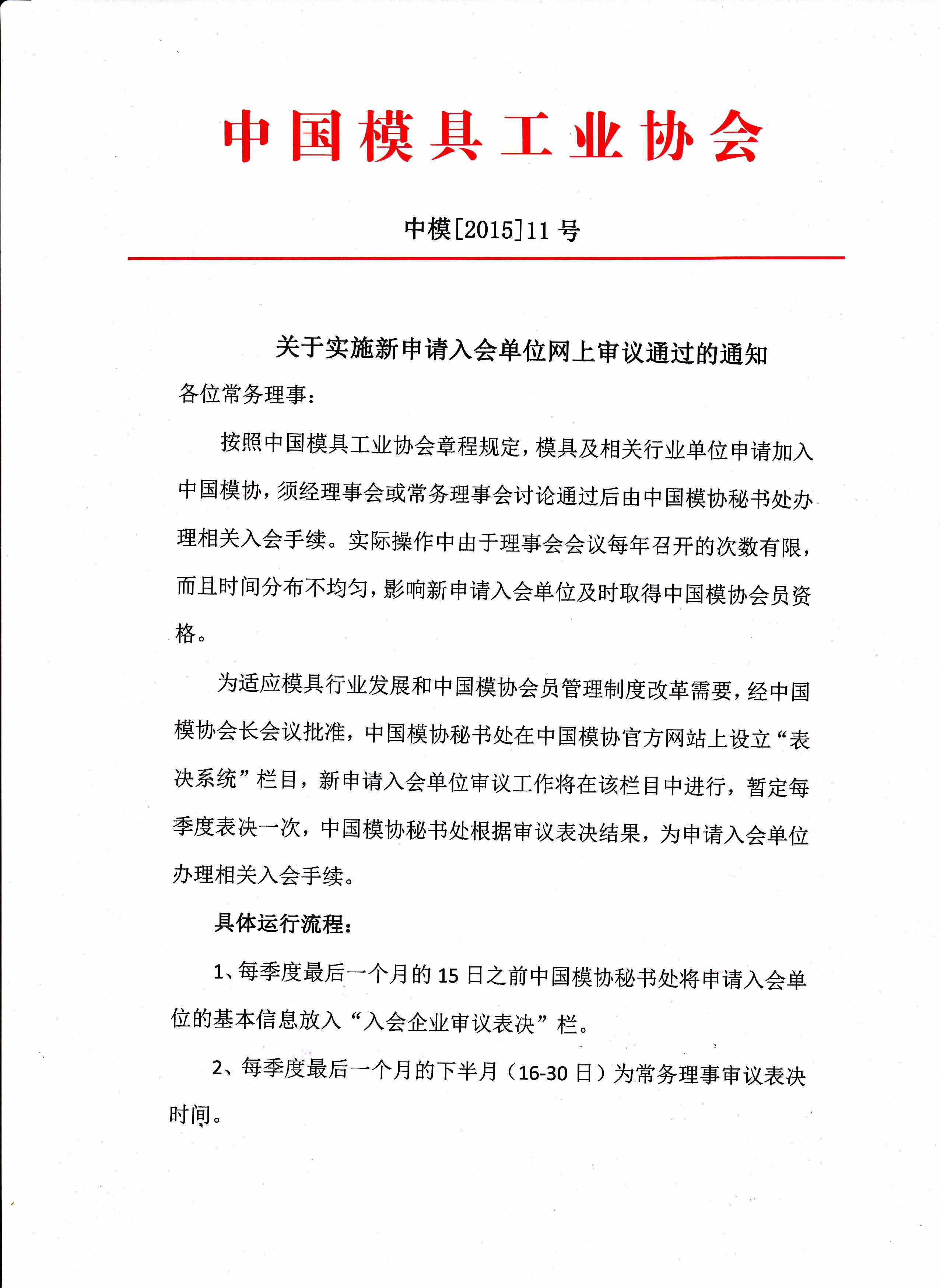 關于實施新申請入會單位網上審議通過的通知