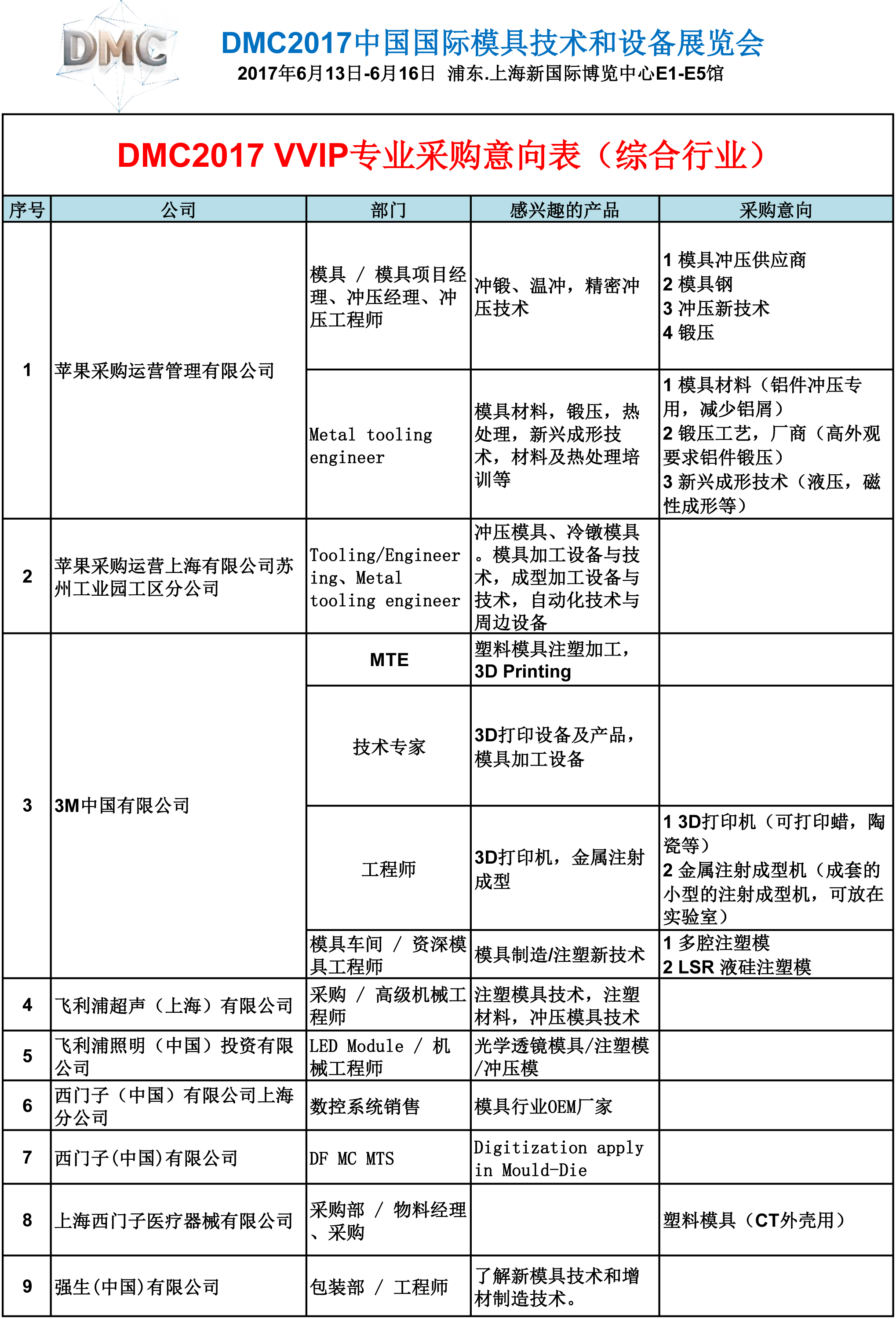 DMC2017 VVIP專業采購意向表(綜合行業)