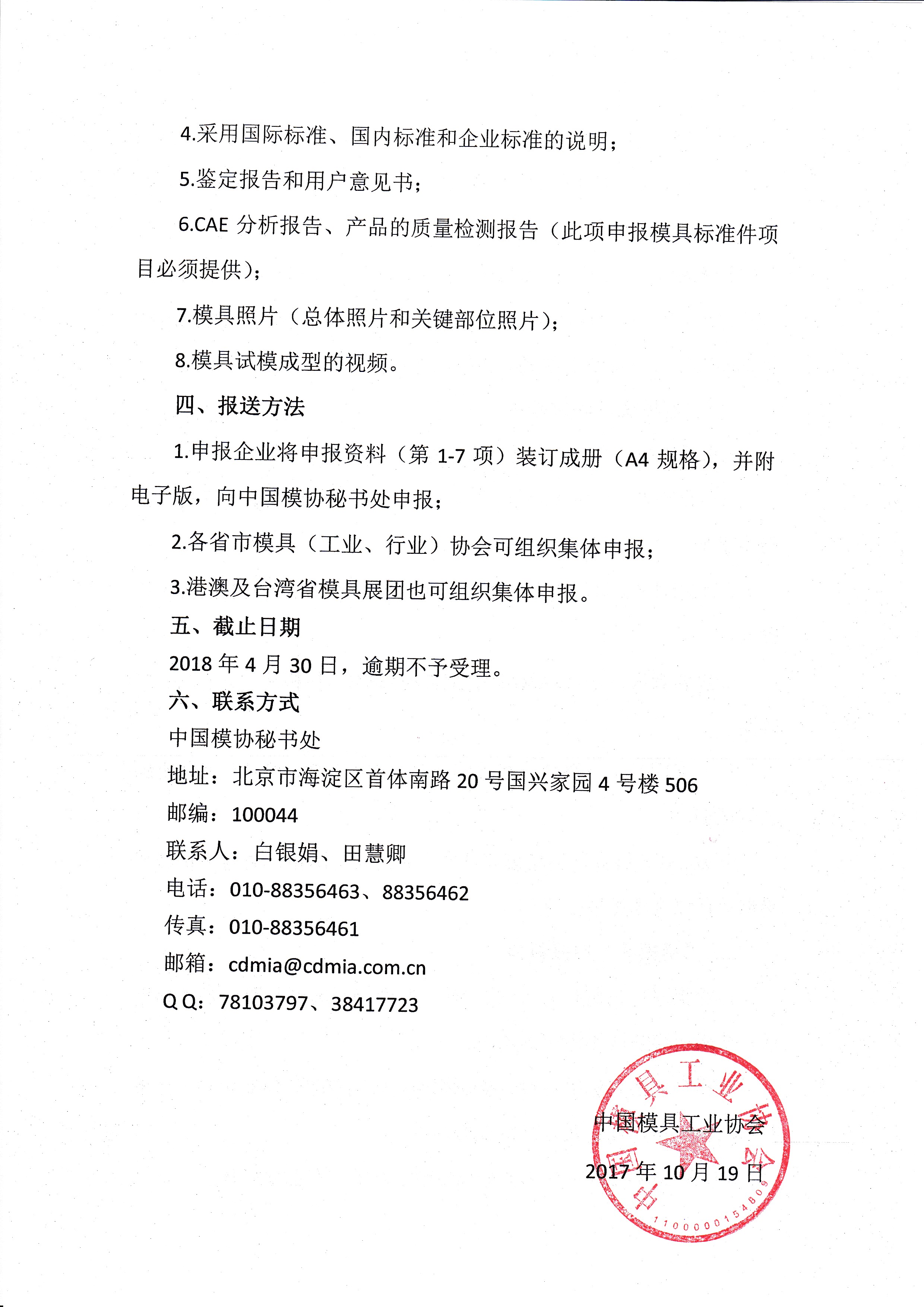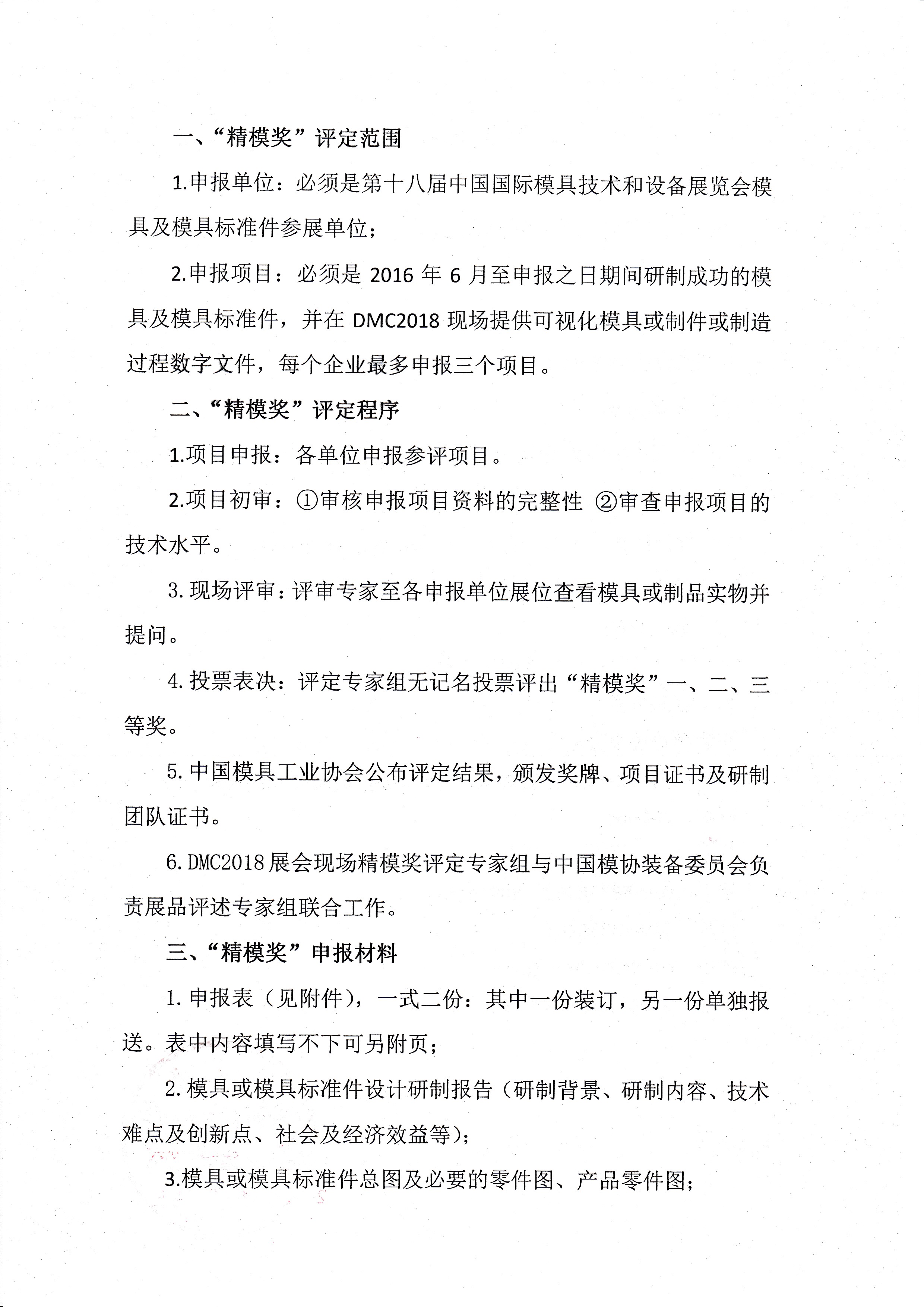 第十八屆中國國際模具技術和設備展覽會(DMC2018)參展模具及模具標準件項目“精模獎”評定通知