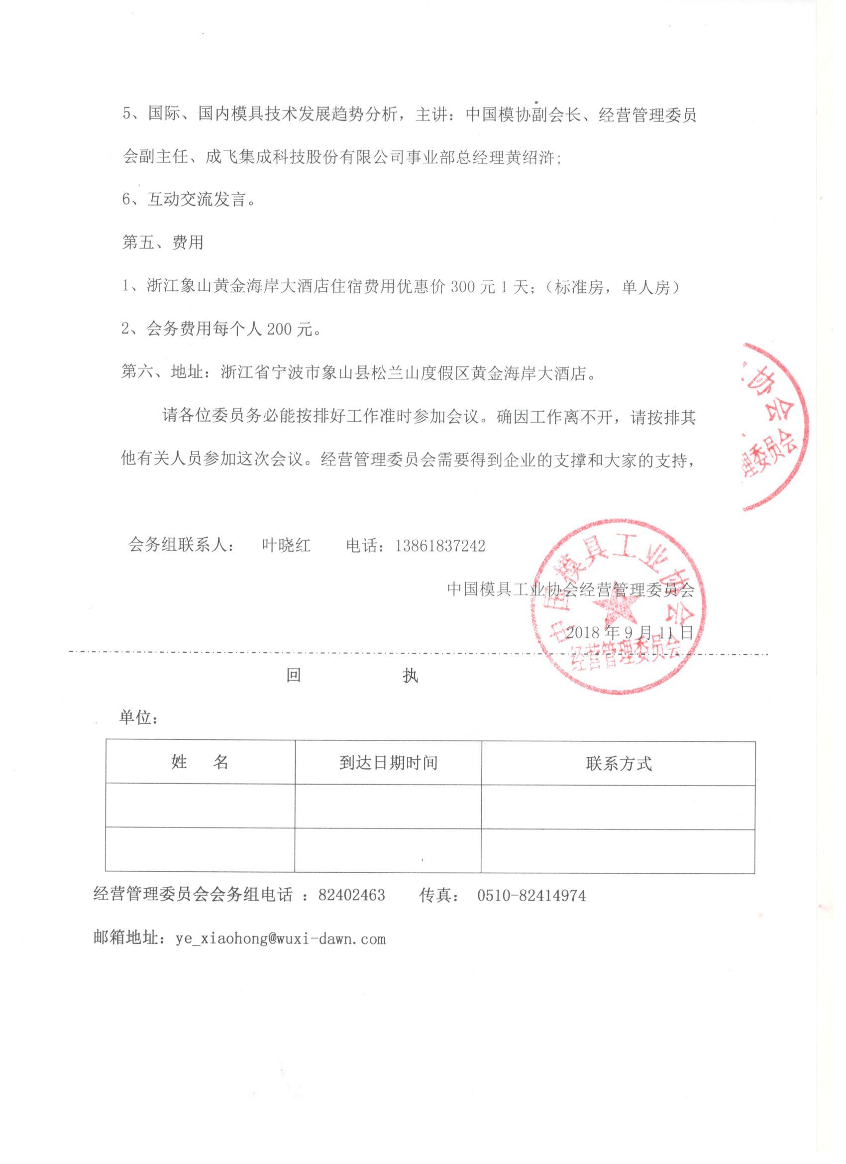 關于召開2018年度中國模具工業協會經營管理委員會會議通知