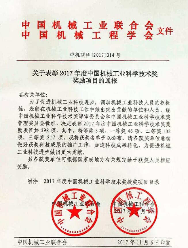 2017年度“中國機(jī)械工業(yè)科學(xué)技術(shù)獎”評審工作已經(jīng)結(jié)束,經(jīng)過各專業(yè)評審組初評和評審委員會終評,共評出獎勵項(xiàng)目398項(xiàng),其中,特等獎3項(xiàng)、一等獎46項(xiàng)、二等獎132項(xiàng)、三等獎217項(xiàng)?,F(xiàn)將中國模具工業(yè)協(xié)會會員單位的獲獎名單予以公布。