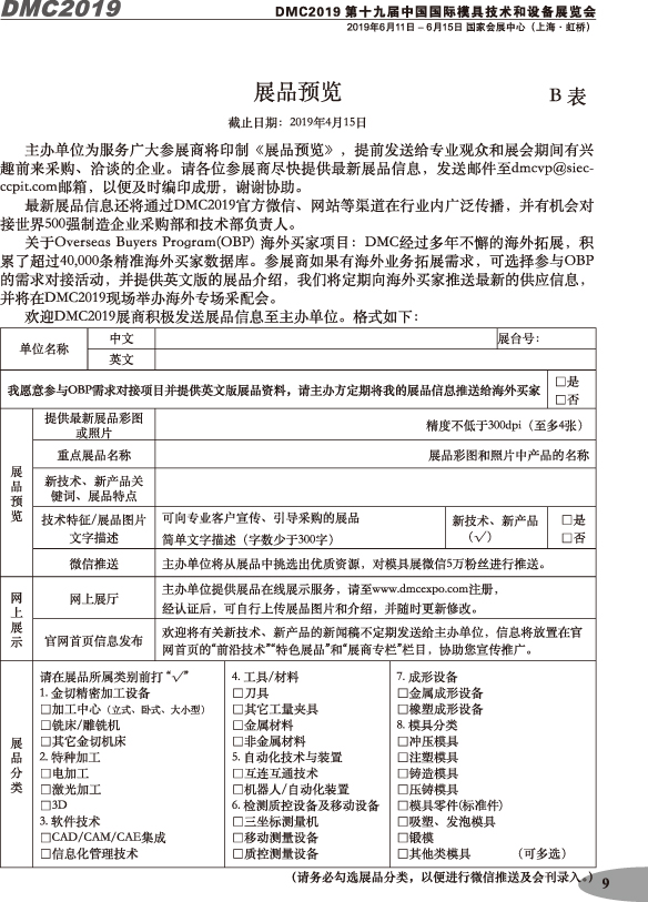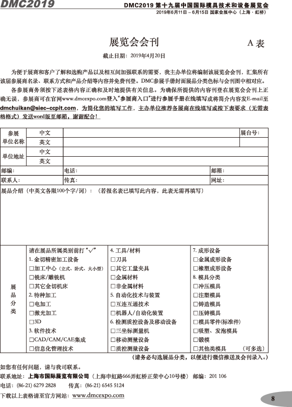 第十九屆中國(guó)國(guó)際模具技術(shù)和設(shè)備展覽會(huì)參展手冊(cè)