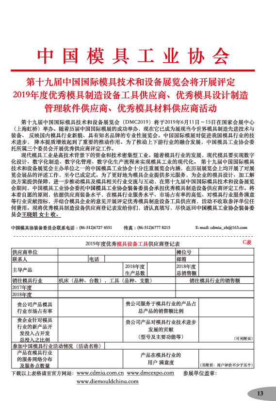 中國(guó)模具工業(yè)協(xié)會(huì)主辦唯一官方網(wǎng)站