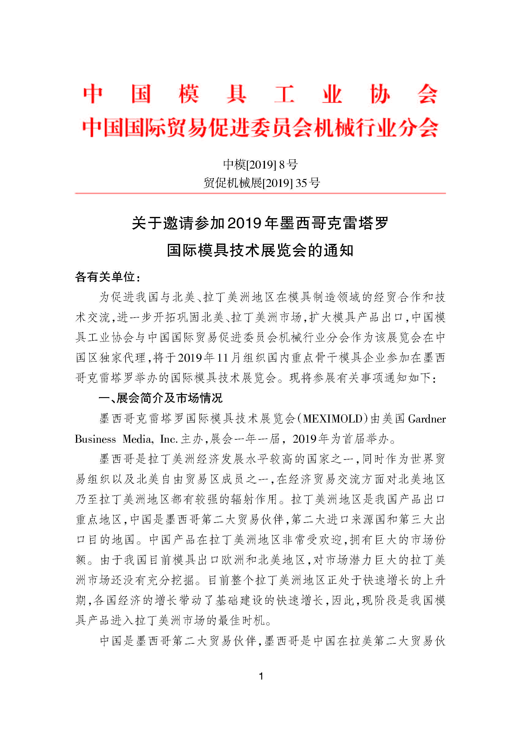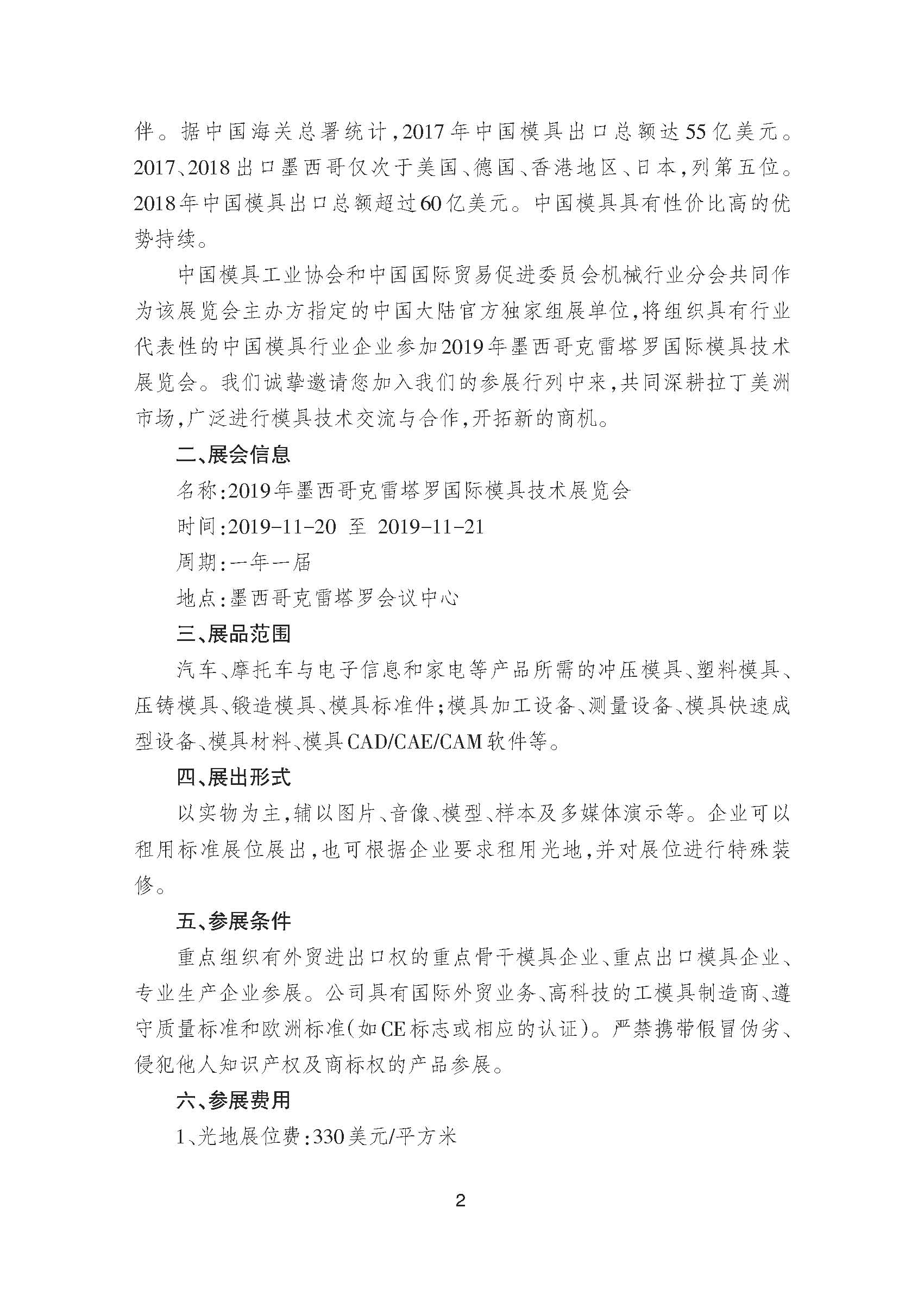 關于邀請參加2019年墨西哥克雷塔羅國際模具技術展覽會的通知