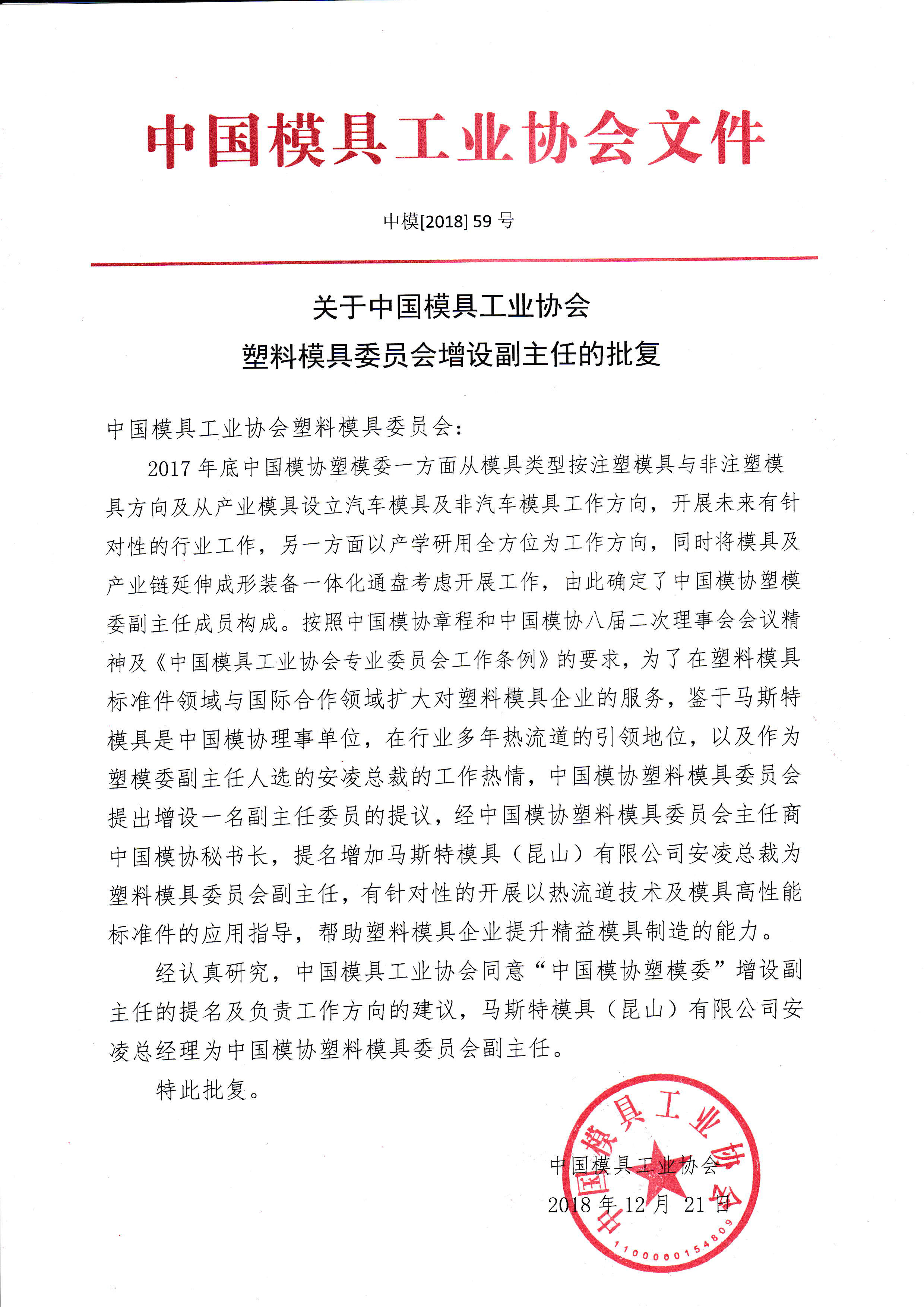 關(guān)于中國模具工業(yè)協(xié)會塑料模具委員會增設(shè)副主任的批復(fù)
