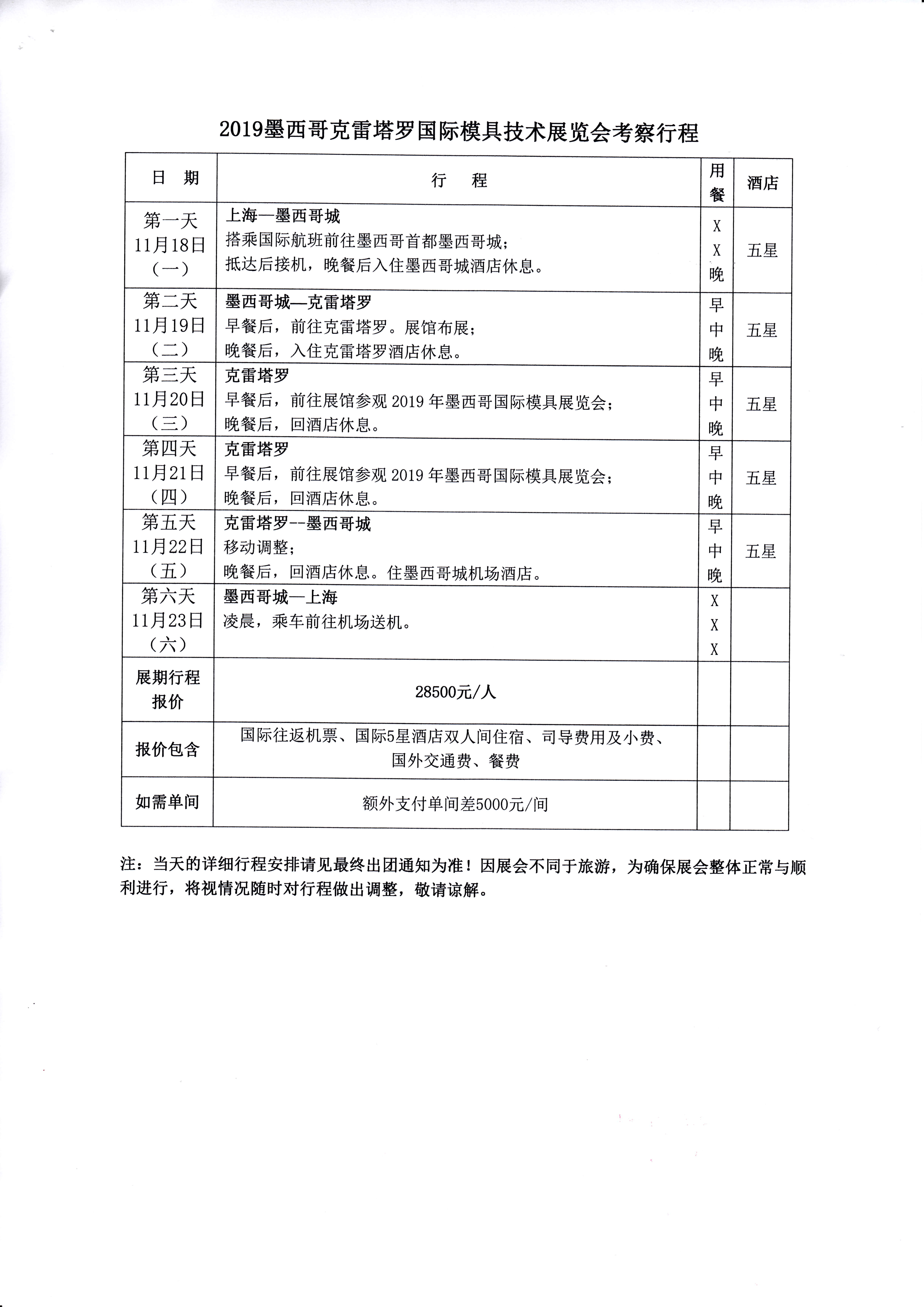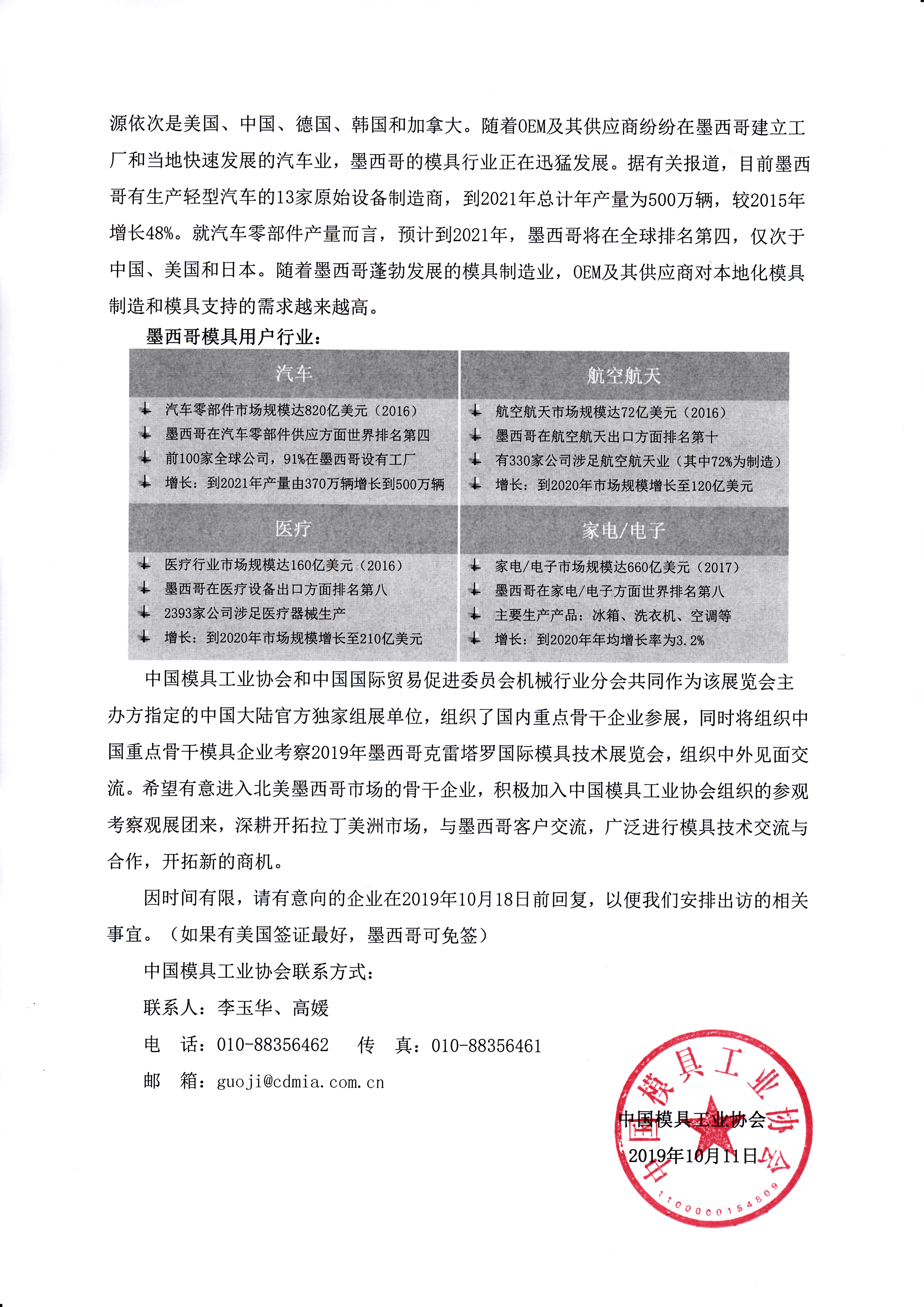關于組織“2019墨西哥克雷塔羅國際模具技術展覽會”考察交流團的通知