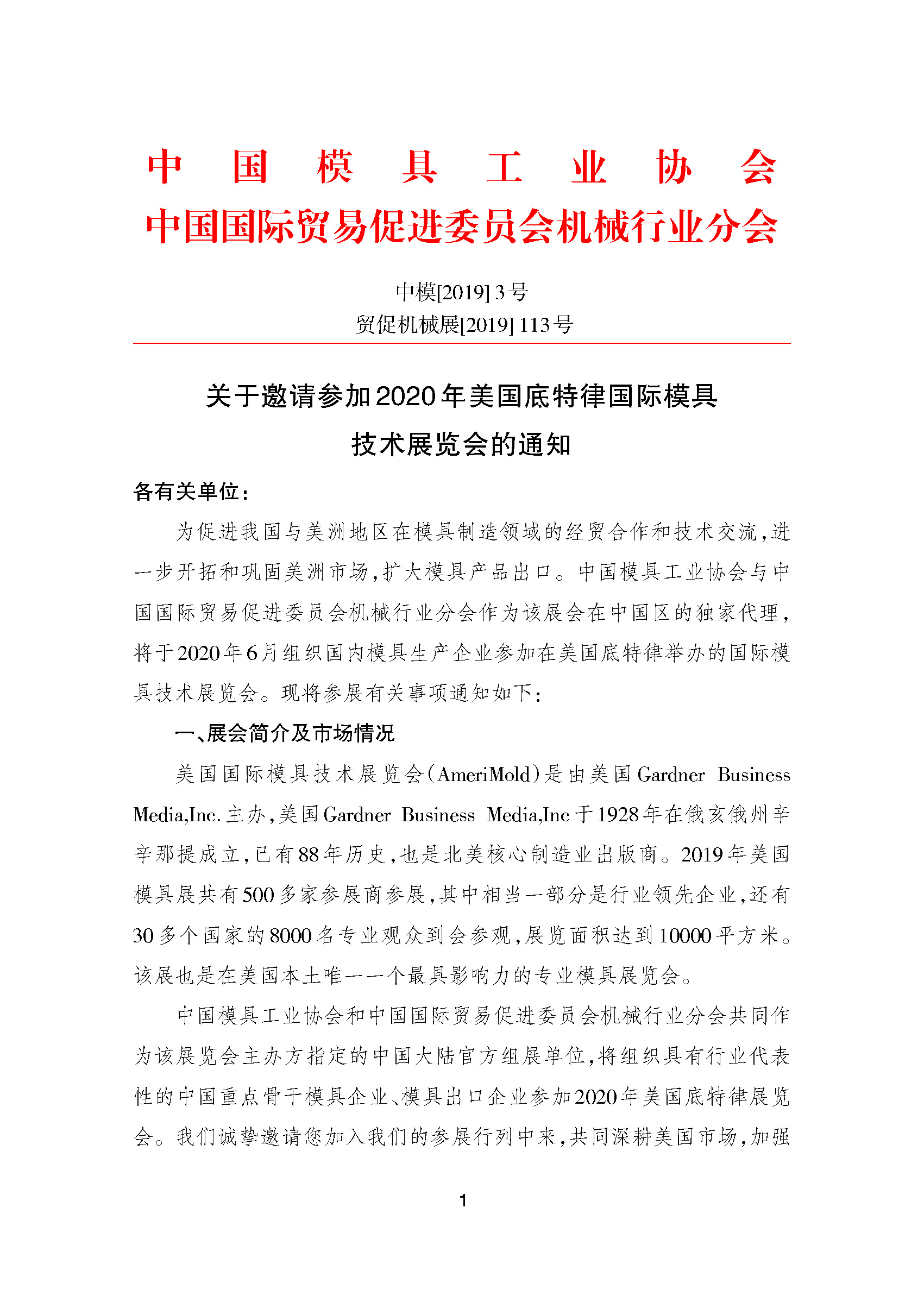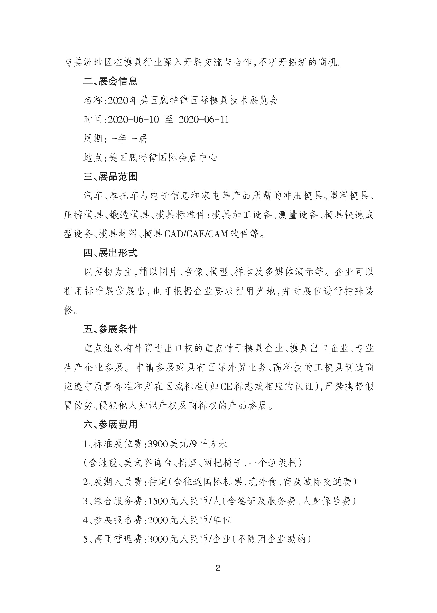 關于邀請參加2020年美國底特律國際模具技術展覽會的通知