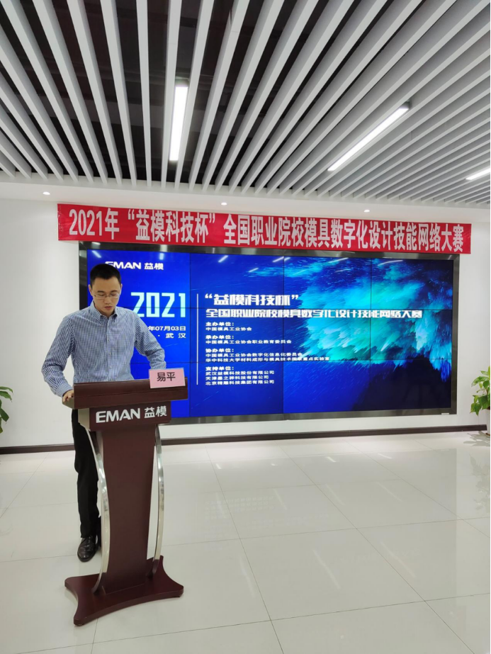 中國模具工業(yè)協(xié)會數(shù)字信息化委員會主任\武漢益模科技股份有限公司董事長易平先生致辭。易董事長代表武漢益??萍脊煞萦邢薰救w員工對各位領導老師同學的參加表示誠摯的歡迎。然后對益模公司做了簡單的介紹,多年來益模一直秉承理論與實踐相結(jié)合的理念,將15年在企業(yè)技術制造應用中的沉淀融入到職業(yè)教育領域,與國內(nèi)多個一流職業(yè)院校合作,打造一系列智能制造實訓室,憑借申報的拉延模具數(shù)字化設計項目,成功入選第4批1+X證書的試點。積極進行教學模式探索,建立適應新形勢下的職業(yè)崗位標準,為院校教學課程設置及崗位職業(yè)能力培養(yǎng)提供有效依據(jù),從而實現(xiàn)產(chǎn)教深度融合。