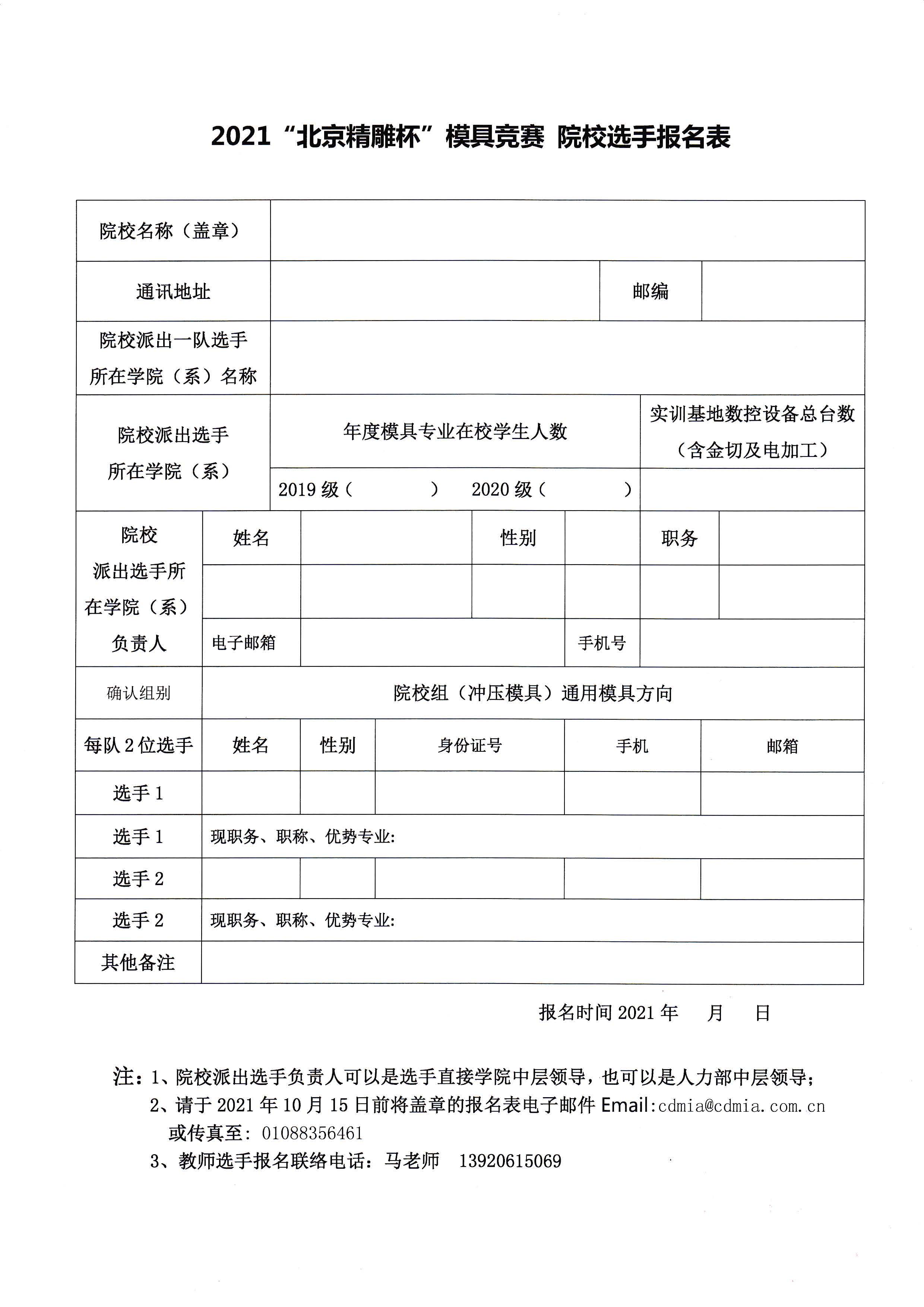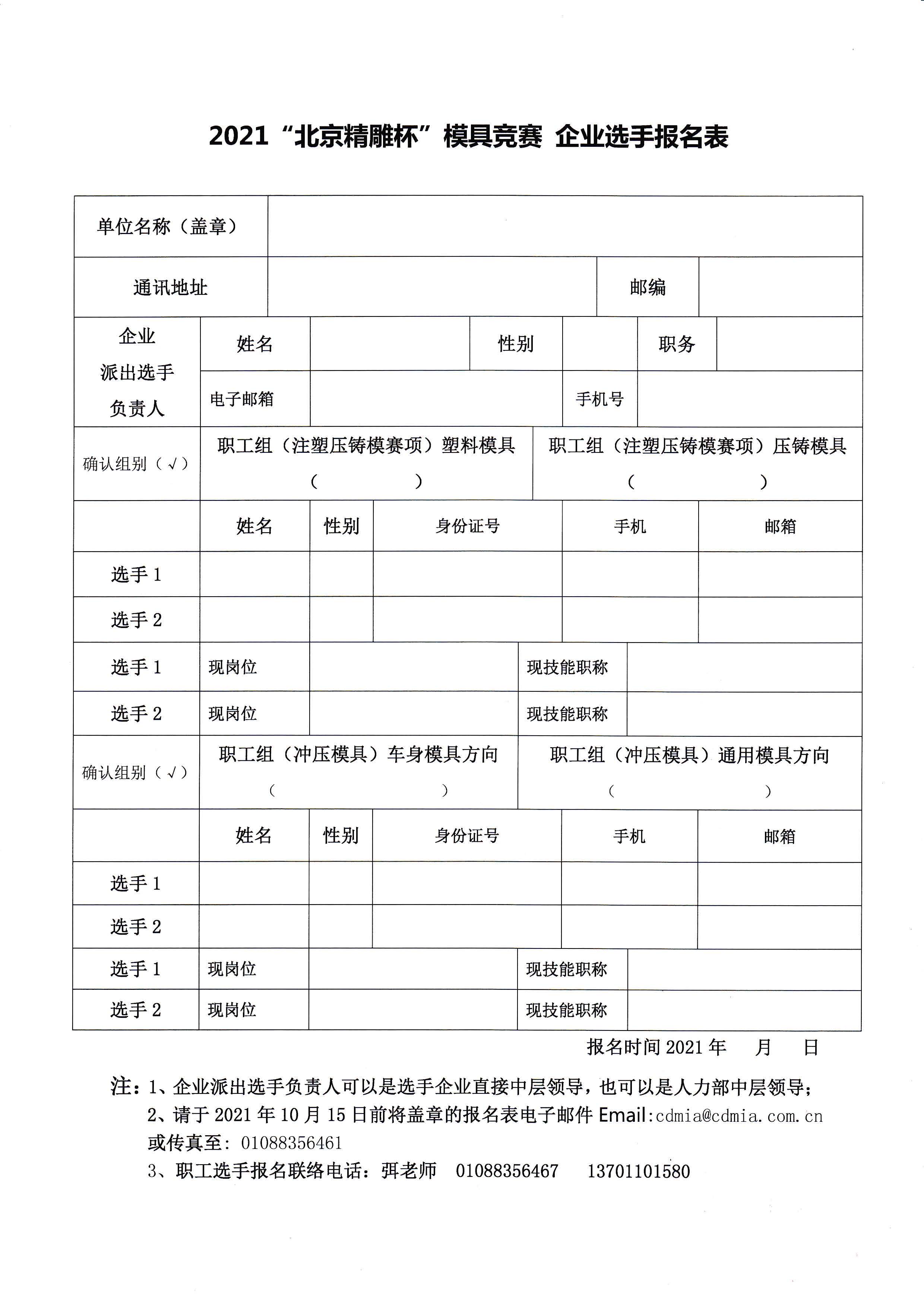 2021年人社部全國行業職業技能競賽——第十九屆全國機械行業職業技能競賽(“北京精雕杯”模具)報名通知