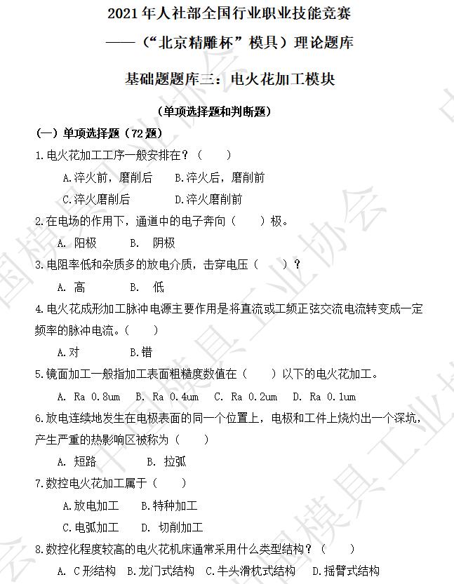 ——(“北京精雕杯”模具)理論題庫