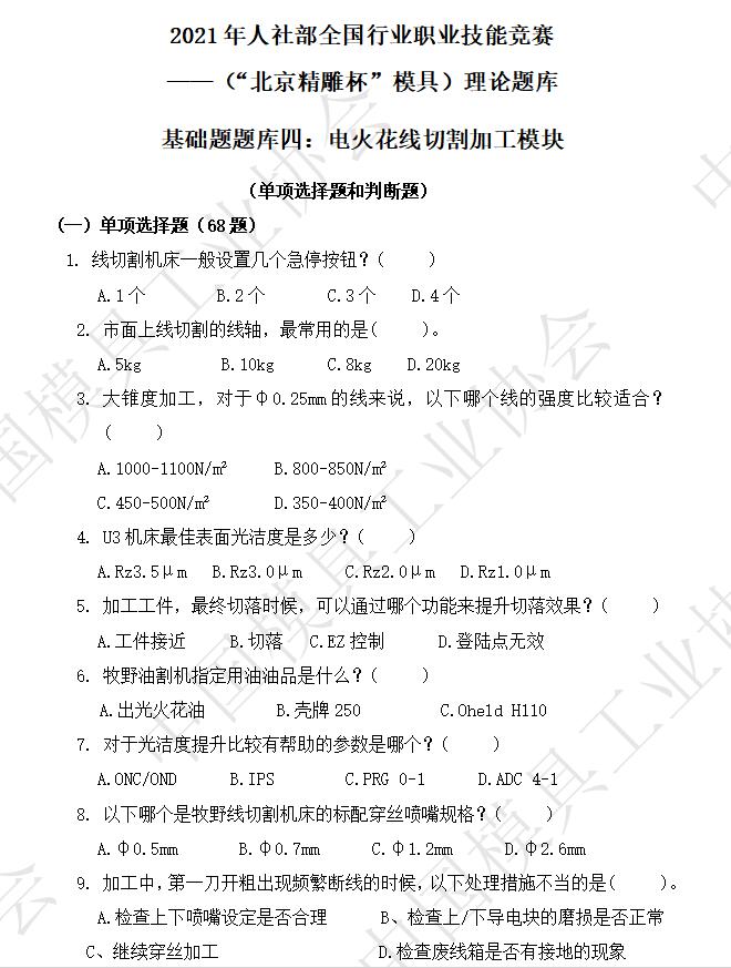 基礎(chǔ)題題庫四:電火花線切割加工模塊