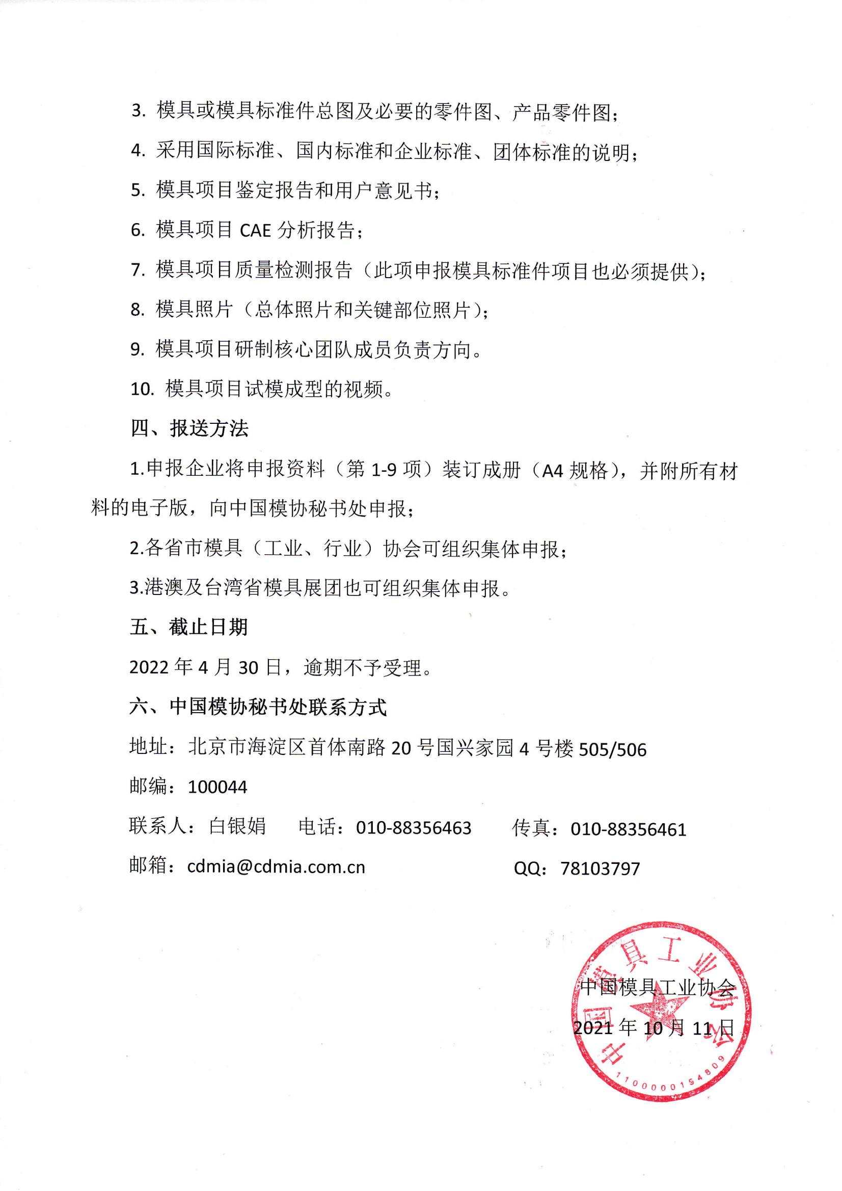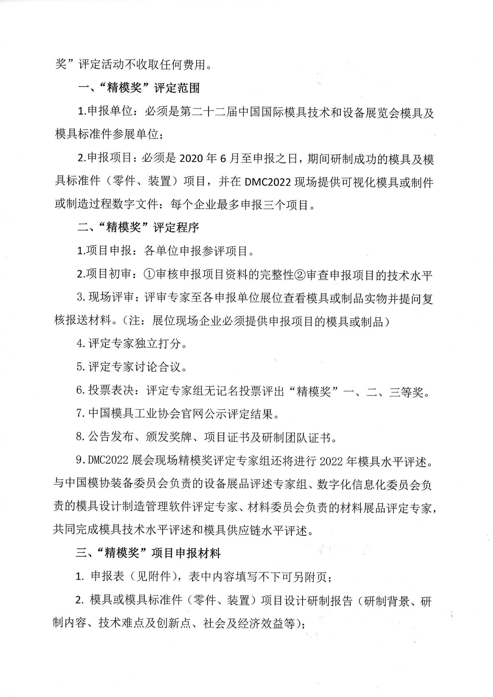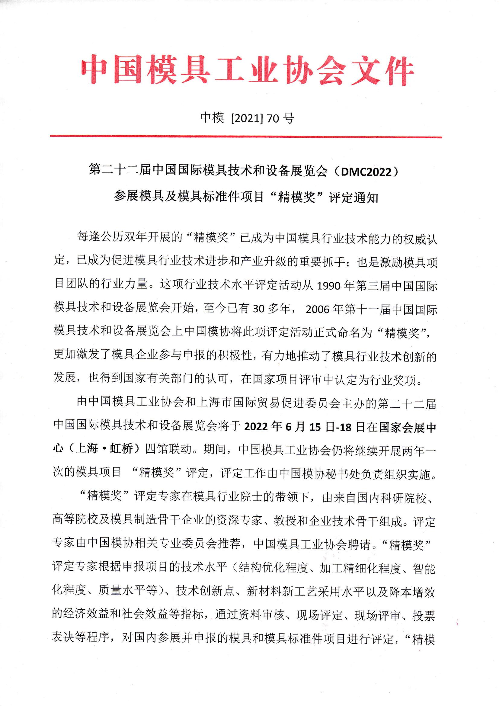 第二十二屆中國國際模具技術和設備展覽會(DMC2022) 參展模具及模具標準件項目“精模獎”評定通知