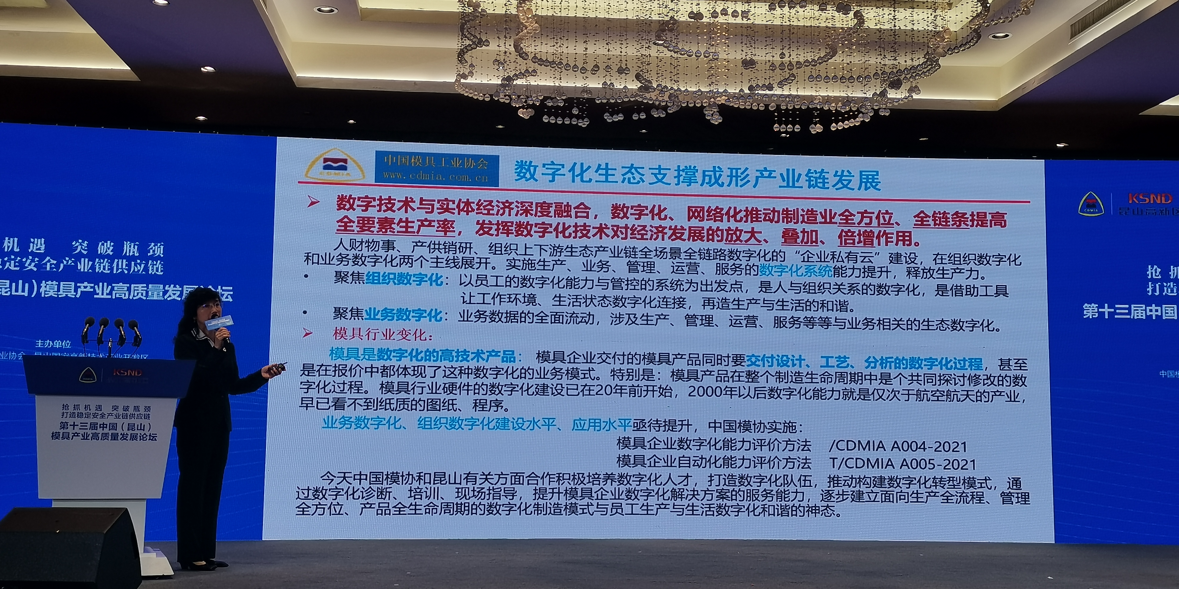 2021年10月29日由中國模具工業協會、昆山國家高新技術產業開發區共同主辦的第十三屆中國(昆山)模具產業高質量發展論壇在昆山皇冠國際會展酒店成功舉辦。本次論壇舉辦旨在搶抓機遇 突破瓶頸,打造穩定安全產業鏈供應鏈,助力模具產業高質量發展。來自模具及上下游行業的專業人員200余人參加。