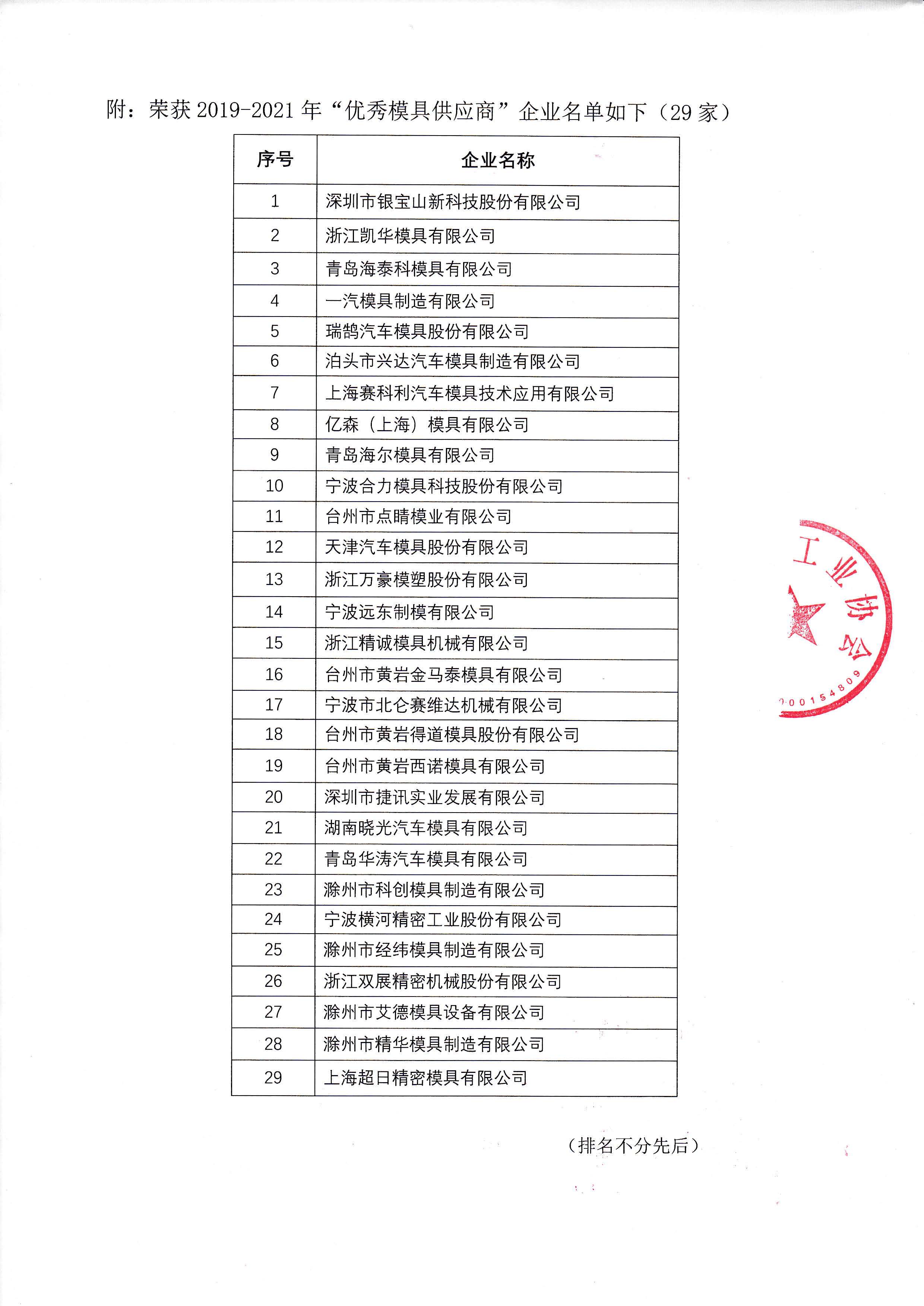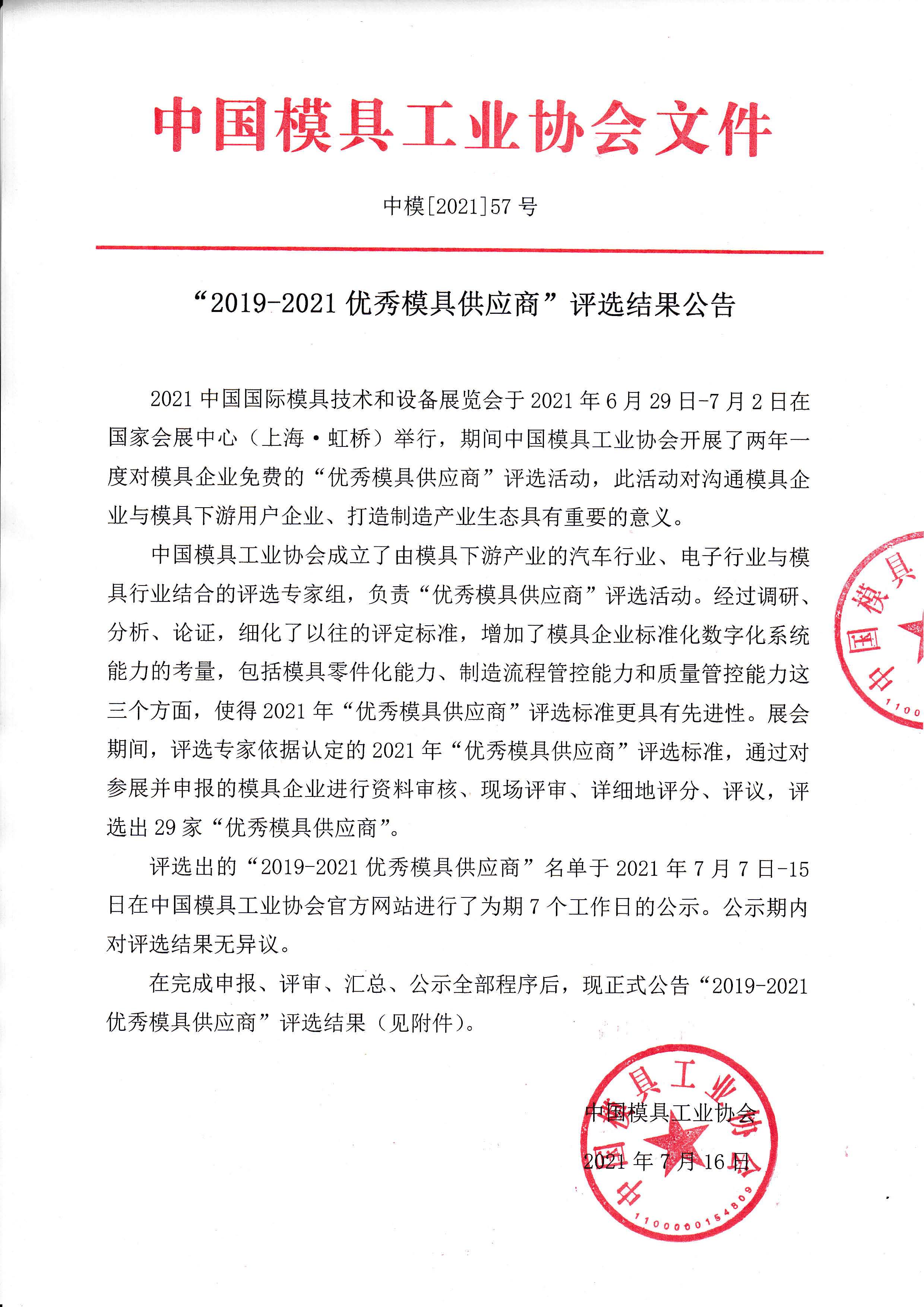 “2019-2021優(yōu)秀模具供應(yīng)商”評選結(jié)果公告