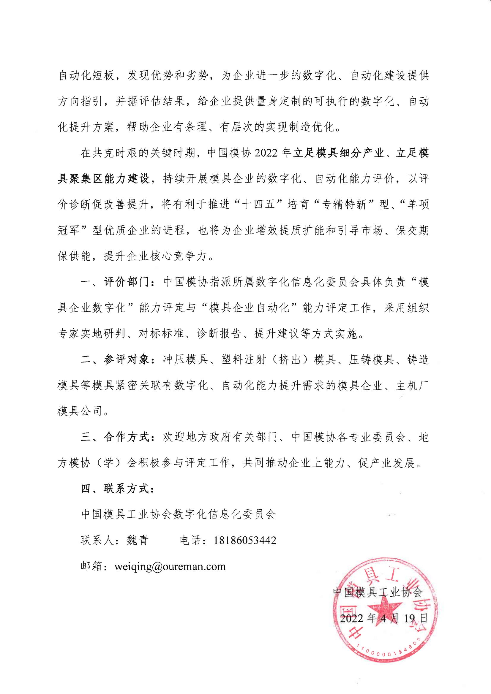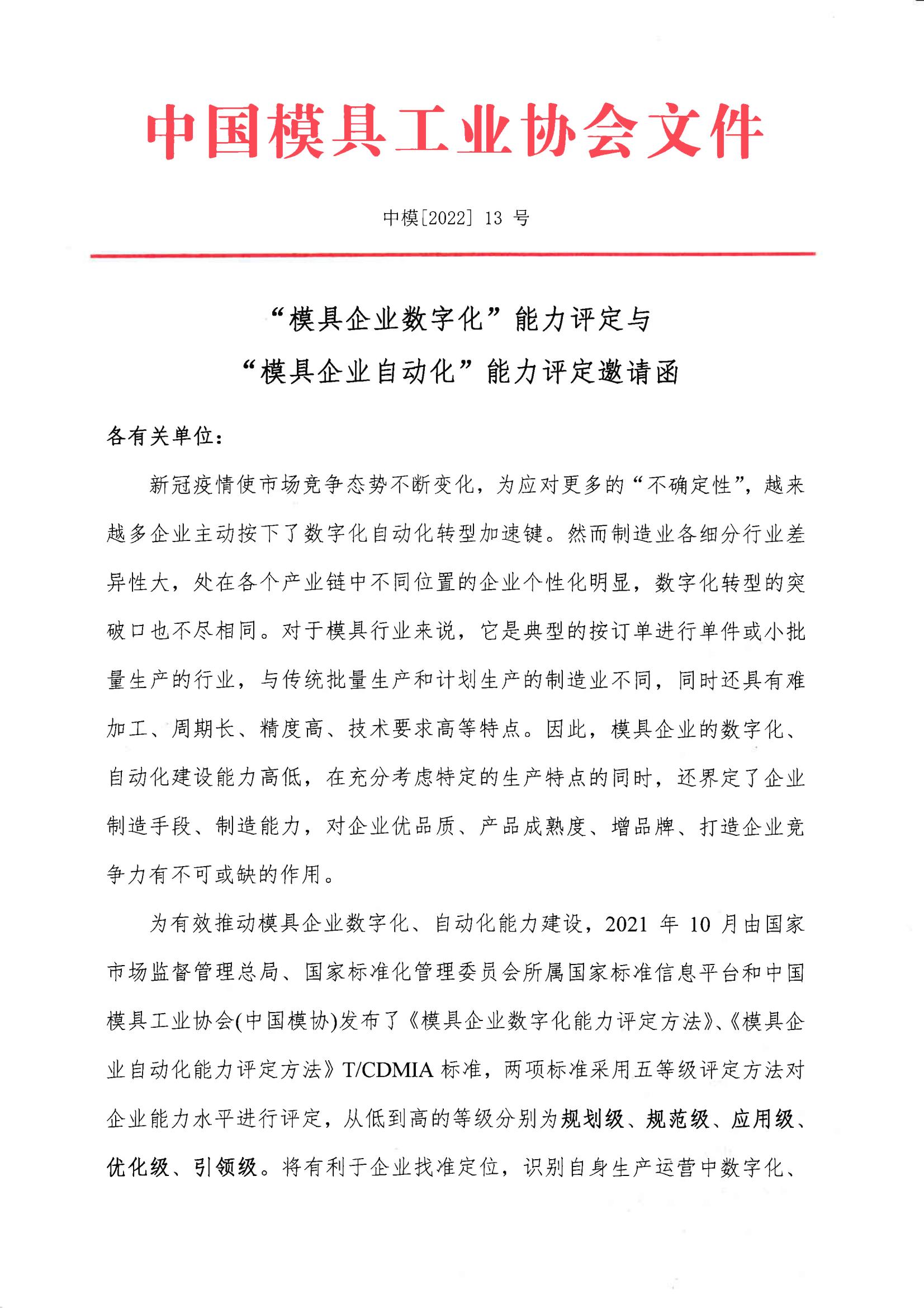 “模具企業(yè)數(shù)字化”能力評定與“模具企業(yè)自動化”能力評定邀請函