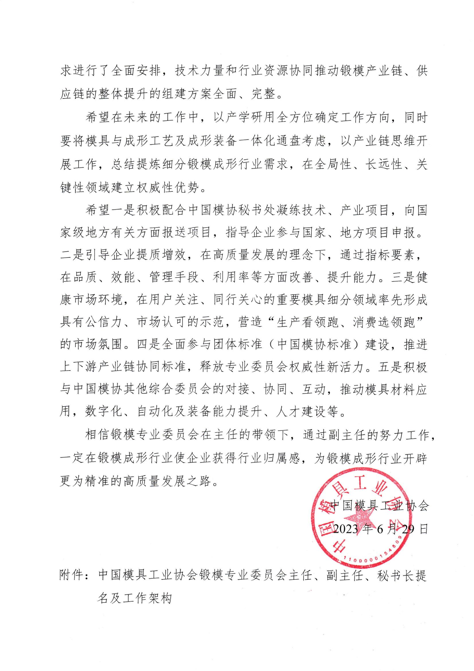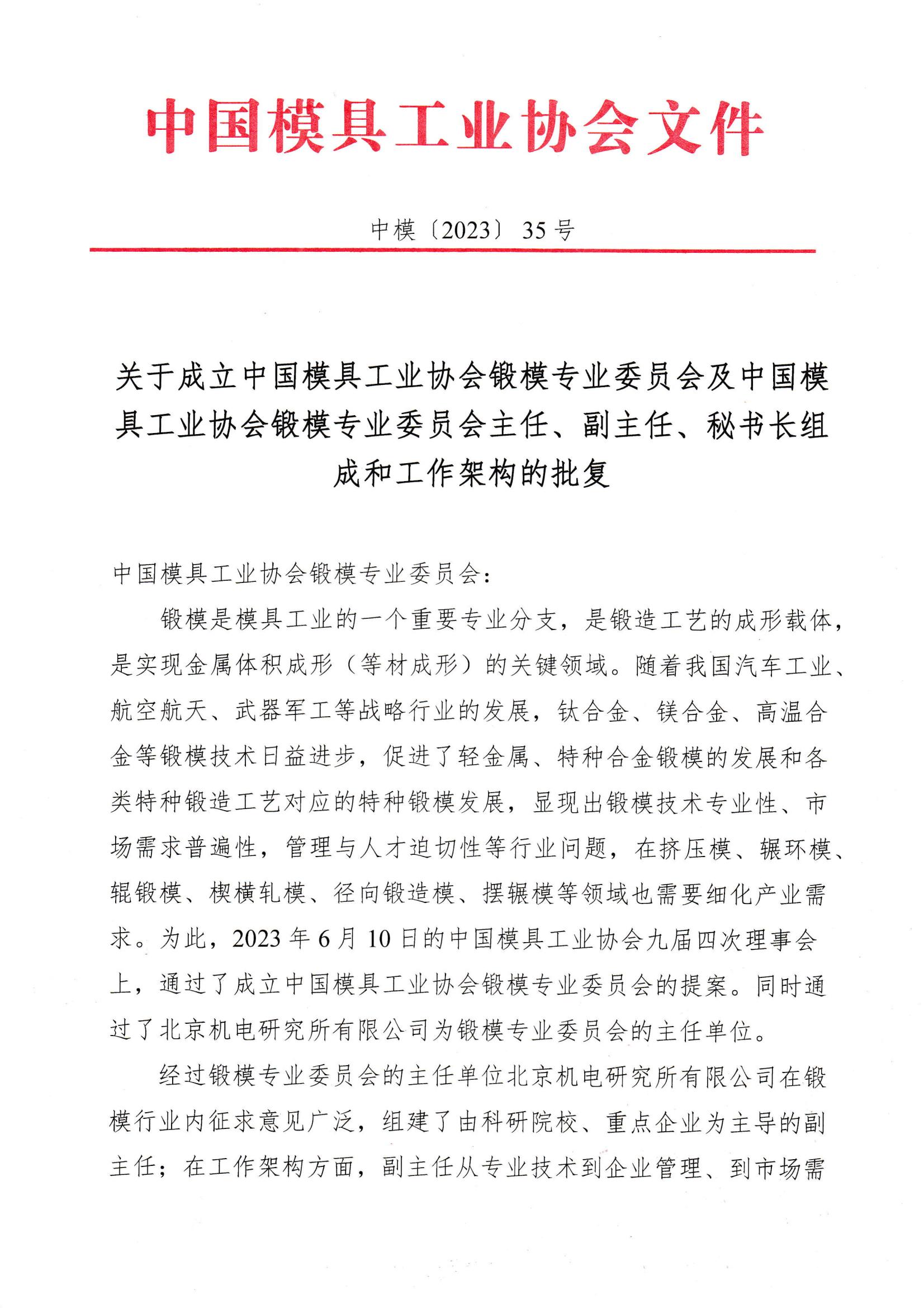 關(guān)于成立中國(guó)模具工業(yè)協(xié)會(huì)鍛模專業(yè)委員會(huì)的批復(fù)