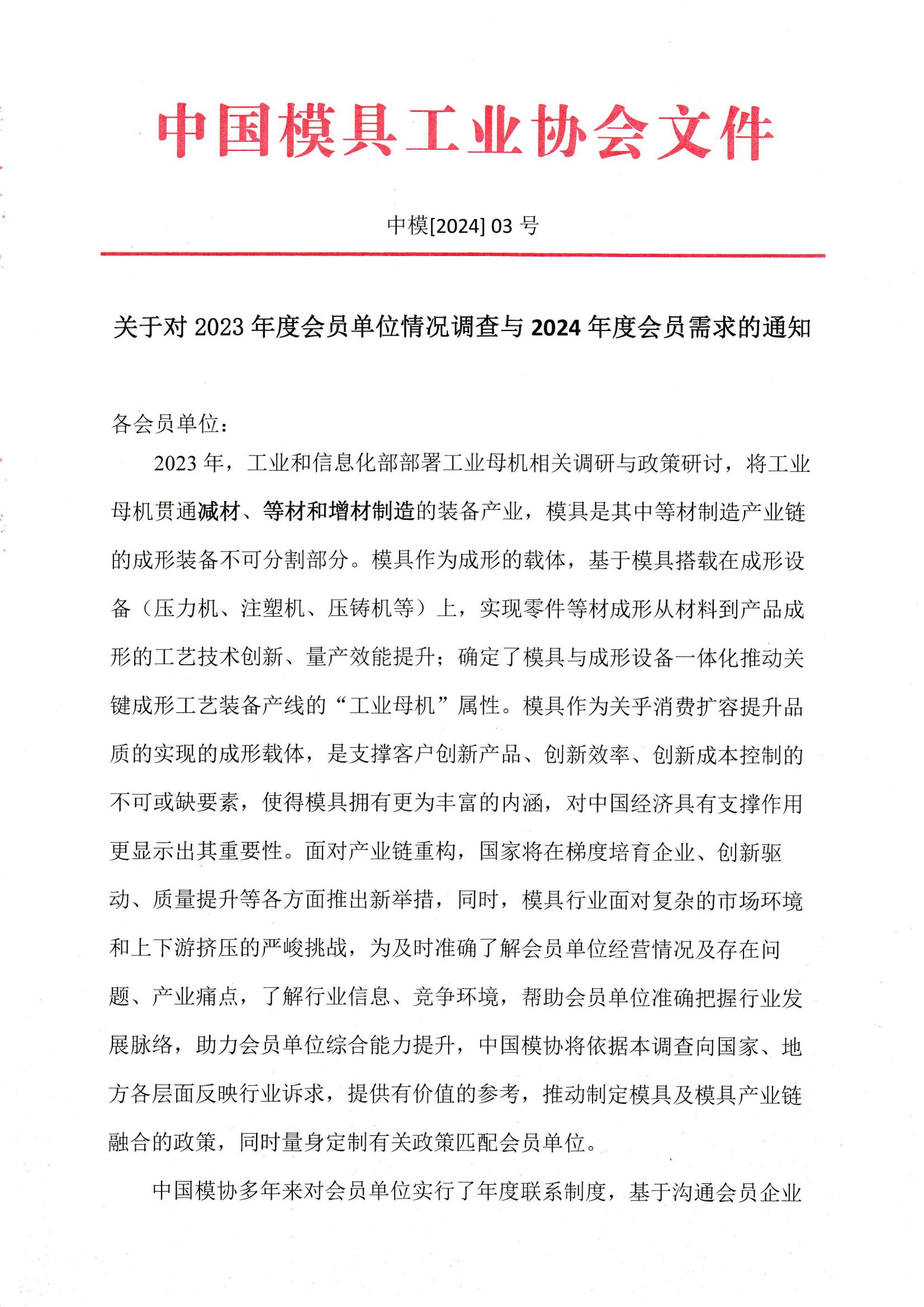 關于對2023年度會員單位情況調查與2024年度會員需求的通知