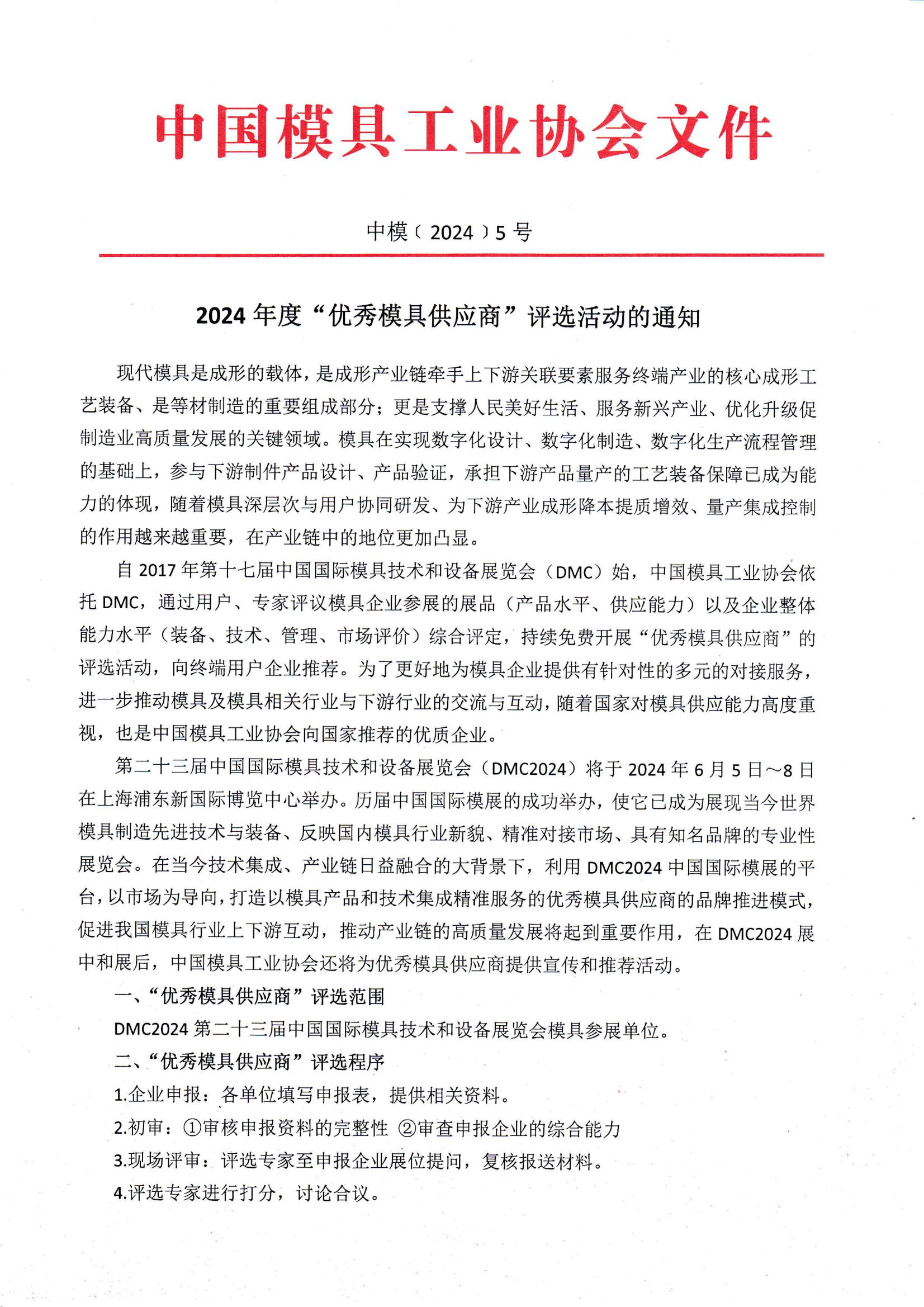 2024年度“優(yōu)秀模具供應(yīng)商”評(píng)選活動(dòng)的通知