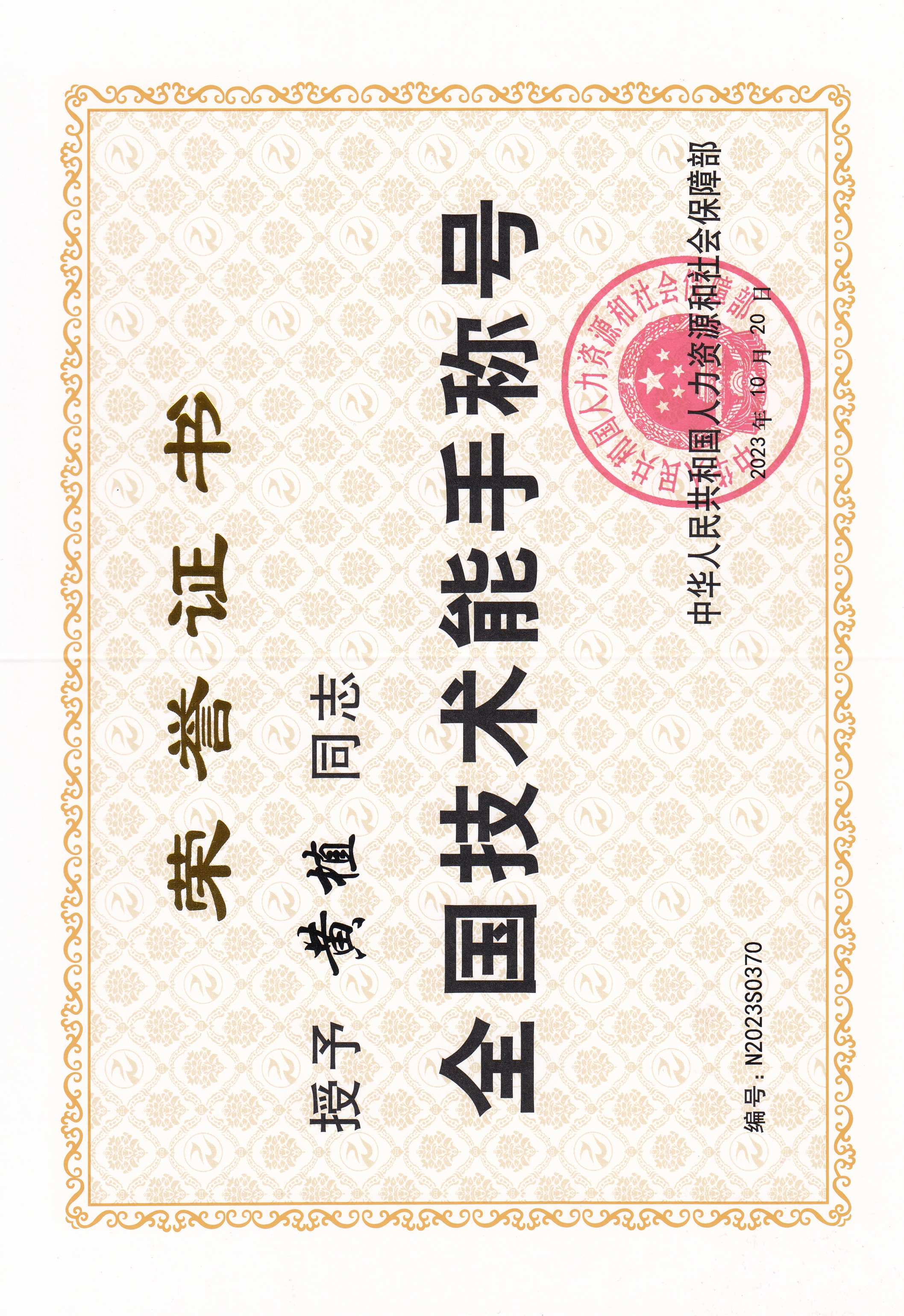 三位競(jìng)賽選手榮獲全國技術(shù)能手稱號(hào)