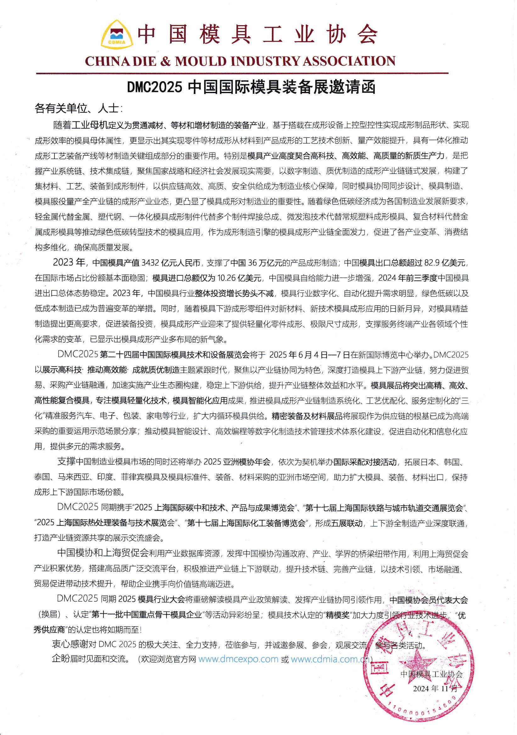 DMC2025中國(guó)國(guó)際模具裝備展邀請(qǐng)函