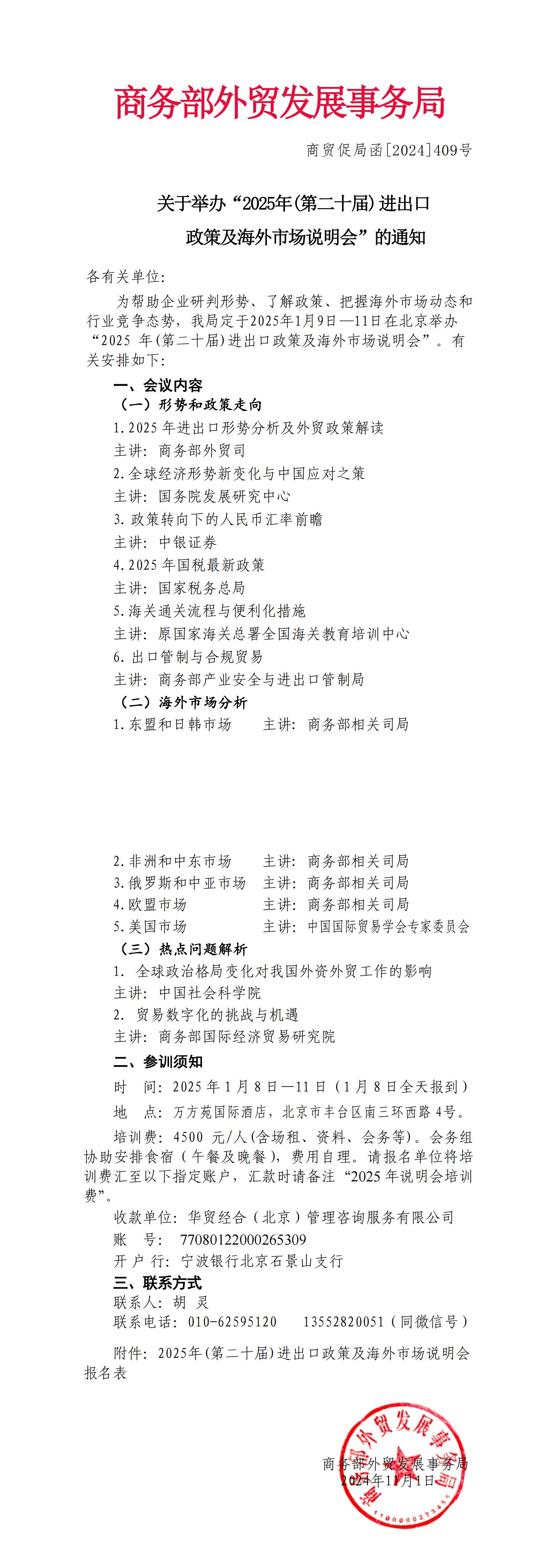 關(guān)于舉辦“2025年(第二十屆)進出口政策及海外市場說明會”的通知
