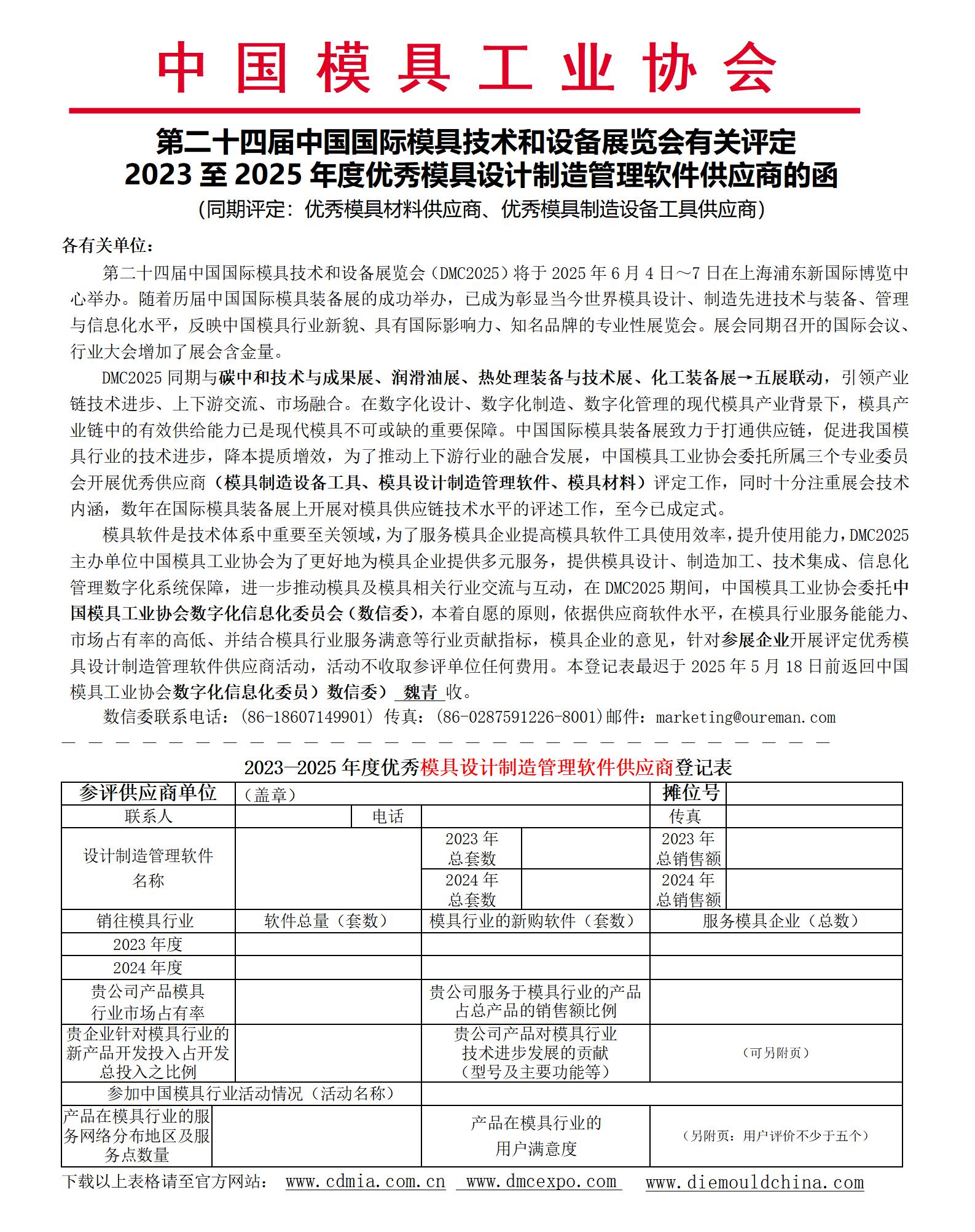 2023至 2025年度優秀模具設計制造管理軟件供應商的函