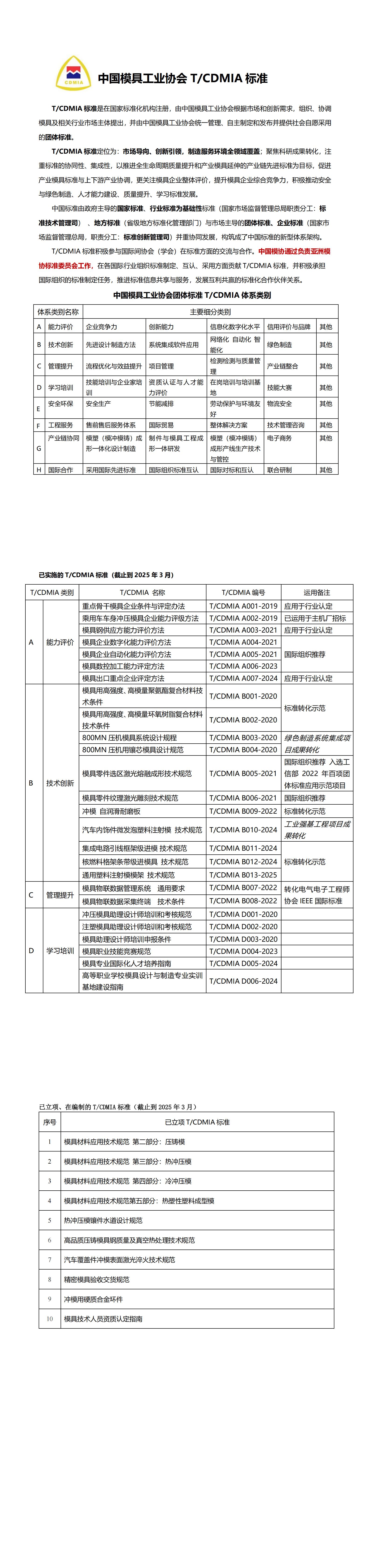 中國模具工業協會T/CDMIA標準