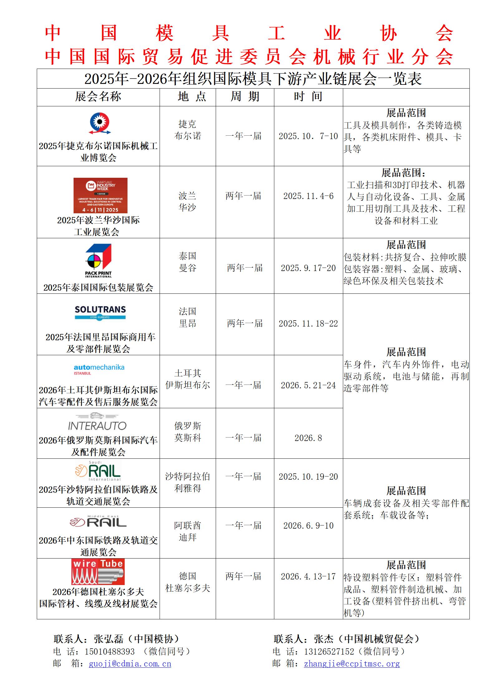 2025-2026年組織國際模具下游產業鏈展會一覽表
